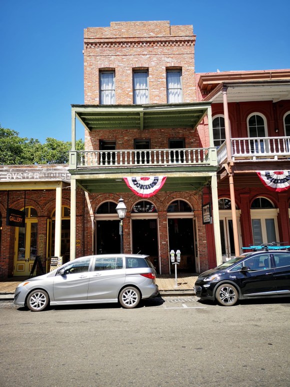 Once we checked out the next morning, we drove to Lake Tahoe through Sacramento (it’s the quickest way to the lake). Obviously, we couldn’t escape from a stopover in Sacramento Old Town, and pretend we were two cowboys lost in the Far West. Another slider which sums it up pretty well: